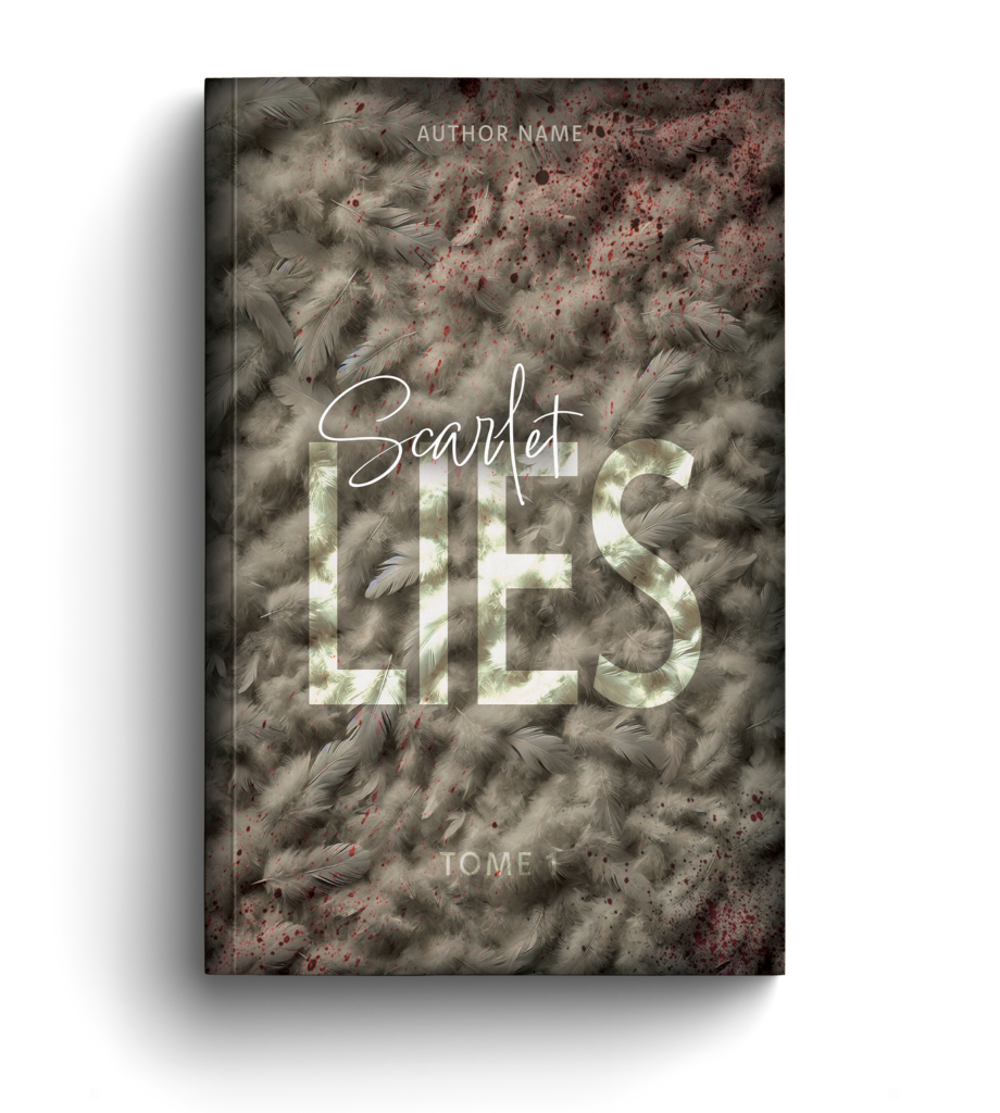 Voici une couverture fictive que j’ai créée. L’objectif que je me suis fixé était de concevoir une couverture qui transmettrait des émotions telles que l’angoisse et le mystère. Le titre a été choisi dans ce but : il signifie “Les mensonges écarlates”.