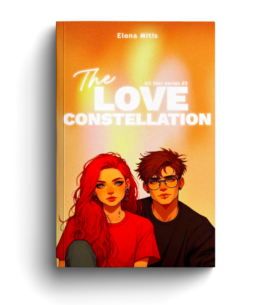 Voici la couverture que j’ai créé pour “The Love Constellation”, le deuxième tome de la trilogie, écrit par Elona Mitis. L’objectif était de créer une couverture qui mettait en avant ses personnages et plus coloré que les couvertures initiales. Tout en gardant la même DA que le tome 1. J’ai donc repris une des illustrations qu’elle avait généré, afin de réaliser cette couverture. J’ai adapté les couleurs par rapport aux personnages en gardant une harmonie entre elles.